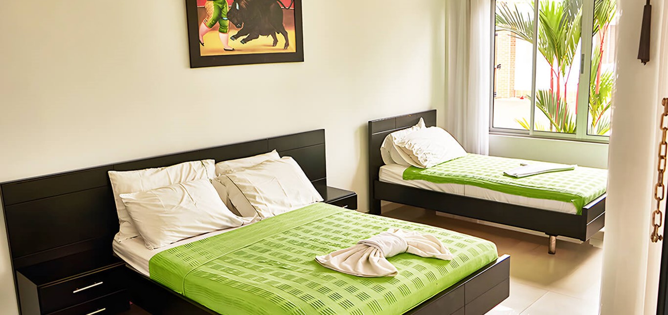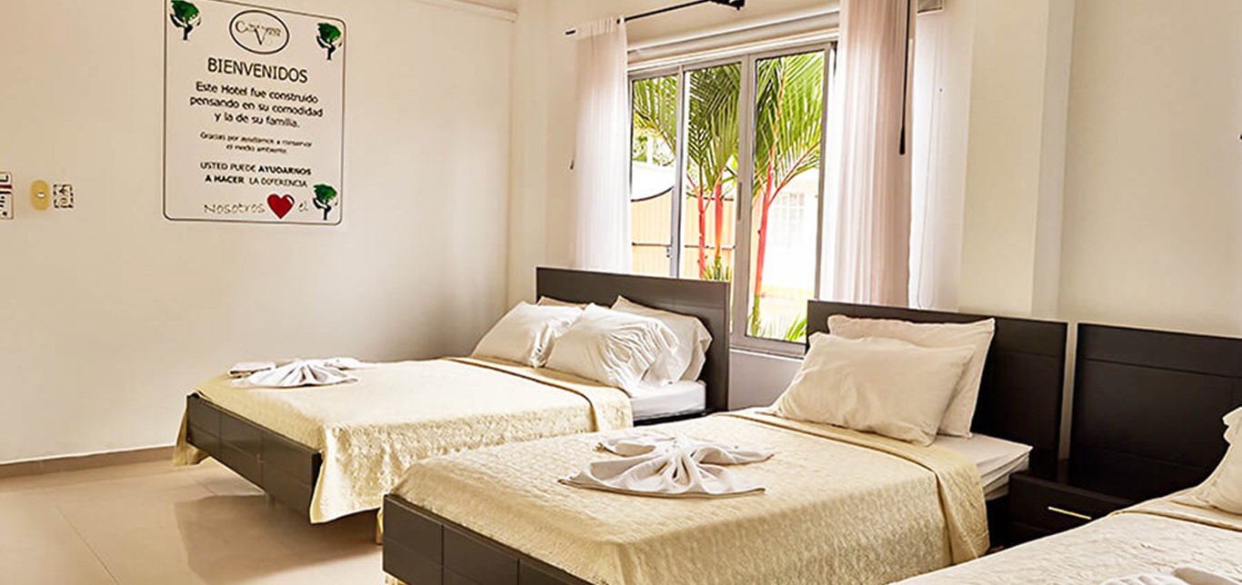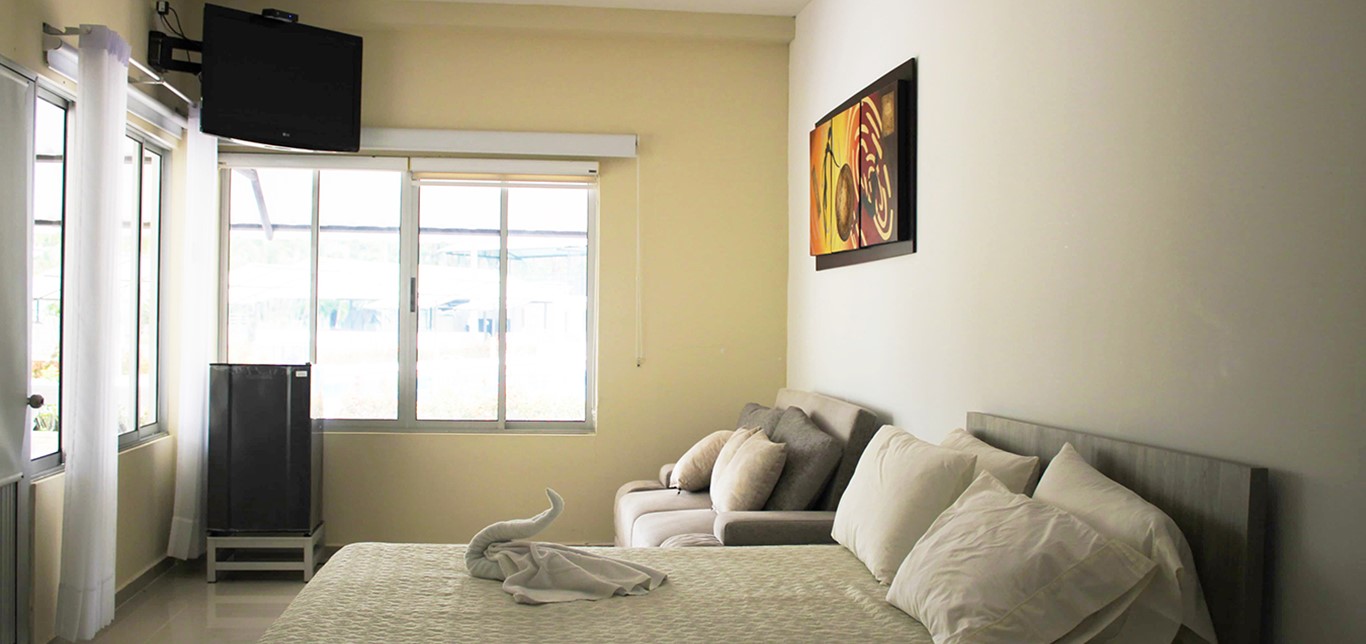 Equipada con una suave y acogedora cama doble, ropa de cama de alta calidad y un amplio espacio, además te ofrece televisor pantalla plana con señal satelital, neverita, aire acondicionado, un amplio baño y wifi.